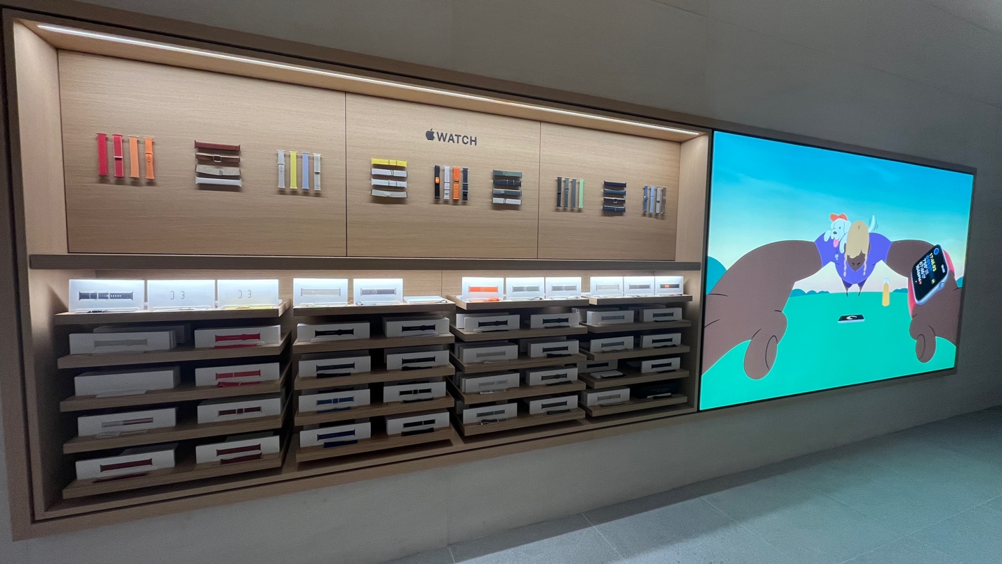 애플워치 기둥에 매달려있는 건 그냥 전시용이고요, 테이블 위에 올려져 있는 애플 워치는 착용할 수 있어요. 스테인리스도 차보고 싶었는데 착용할 수 있던 거에는 알루미늄이랑 울트라만 있어서 아쉬웠답니다. 친절한 직원분이 착용을 원하면 가져다준다고 했는데요. 한번 착용해 보자고 가져달라고 하기는 미안해서 됐다고 했어요.