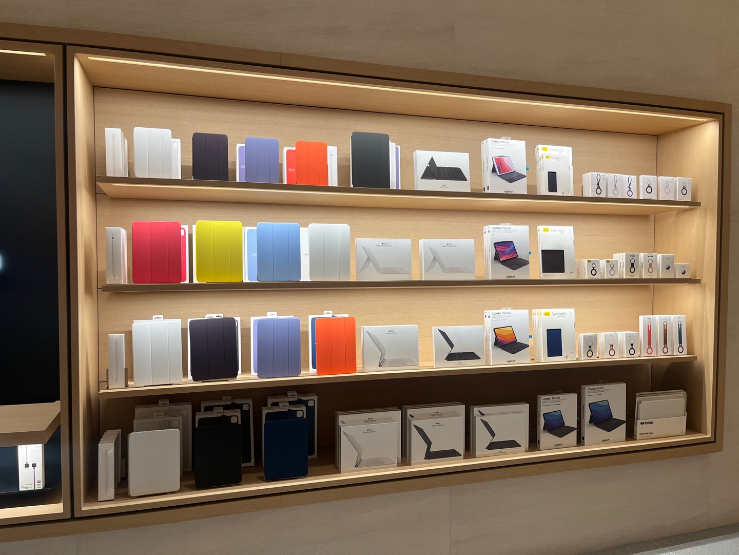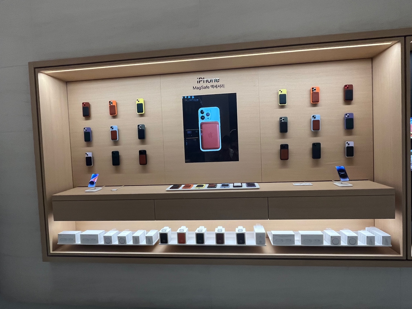 휴대폰 케이스, 아이패드 케이스, 키보드, 워치 스트랩, 보조배터리 등 각종 애플 액세서리가 전시되어 있어 구경하는 재미가 쏠쏠했어요.