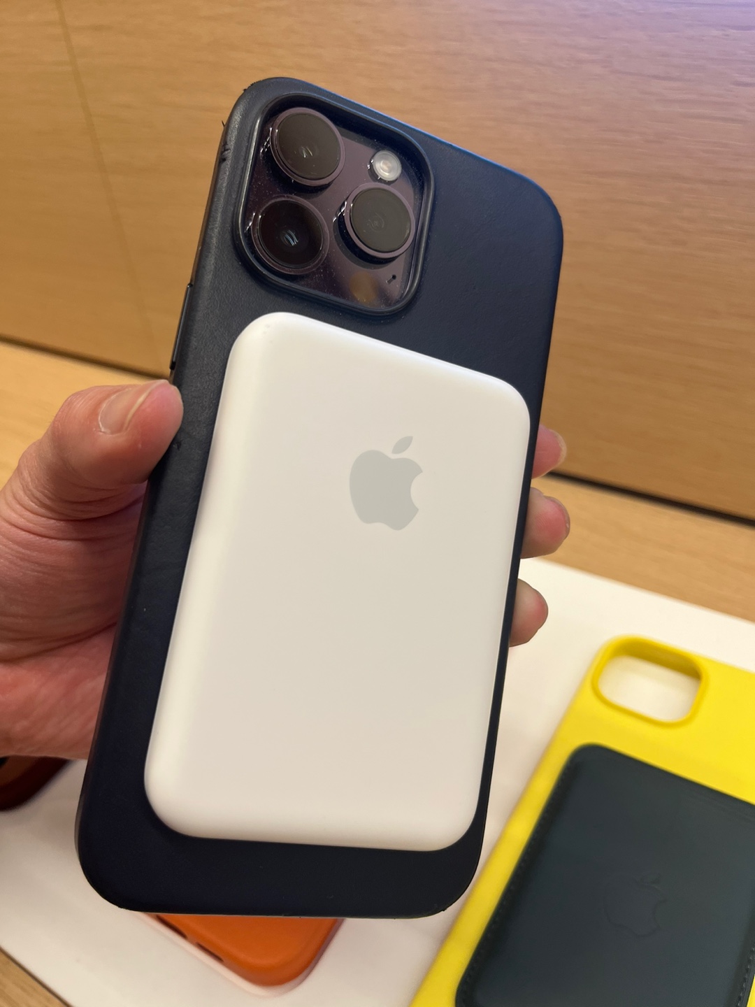 이 아이는 요즘 절실하게 필요한 소품이에요. 맥세이프 카드지갑이라 이렇게 맥세이프 케이스 뒤에 붙여서 쓸 수 있습니다. 저는 아이폰 13을 사용해서 맥세이프 기능이 있긴 하지만, 케이스티파이 케이스가 맥세이프 호환이 아니라서 잘 안 붙더라고요. 위의 보조배터리나 카드지갑을 사용하려면 케이스를 바꿔야겠습니다.